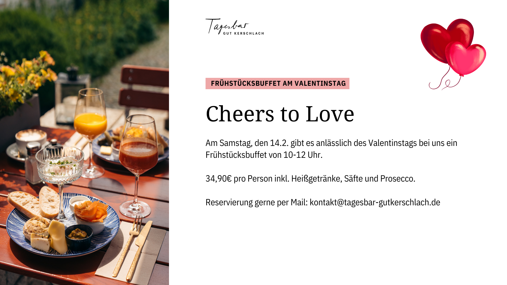 Angenehme Atmosphäre trifft auf einzigartige Natur und atemberaubenden Alpenblick: Unser Café im Tagesbar-Stil liegt auf Gut Kerschlach – idyllisch eingebettet zwischen Ammersee und Starnberger See. Hier könnt Ihr Euch so richtig verwöhnen lassen: Mit einem vielseitigen Frühstück mit regionalen Zutaten auf der weitläufigen Terrasse in der Morgensonne, mit Lunch und Snacks, um dem Alltagstrott einmal kurz zu entfliehen oder mit Kaffee und hausgemachte Kuchen für ein gemütliches Nachmittagstreffen mit den Liebsten oder nach einem Wochenend-Spaziergang. Abends wartet der Sundowner als perfekter Begleiter zum Sonnenuntergang: ein frisch gezapftes Bier oder ein erlesenes Glas Wein.